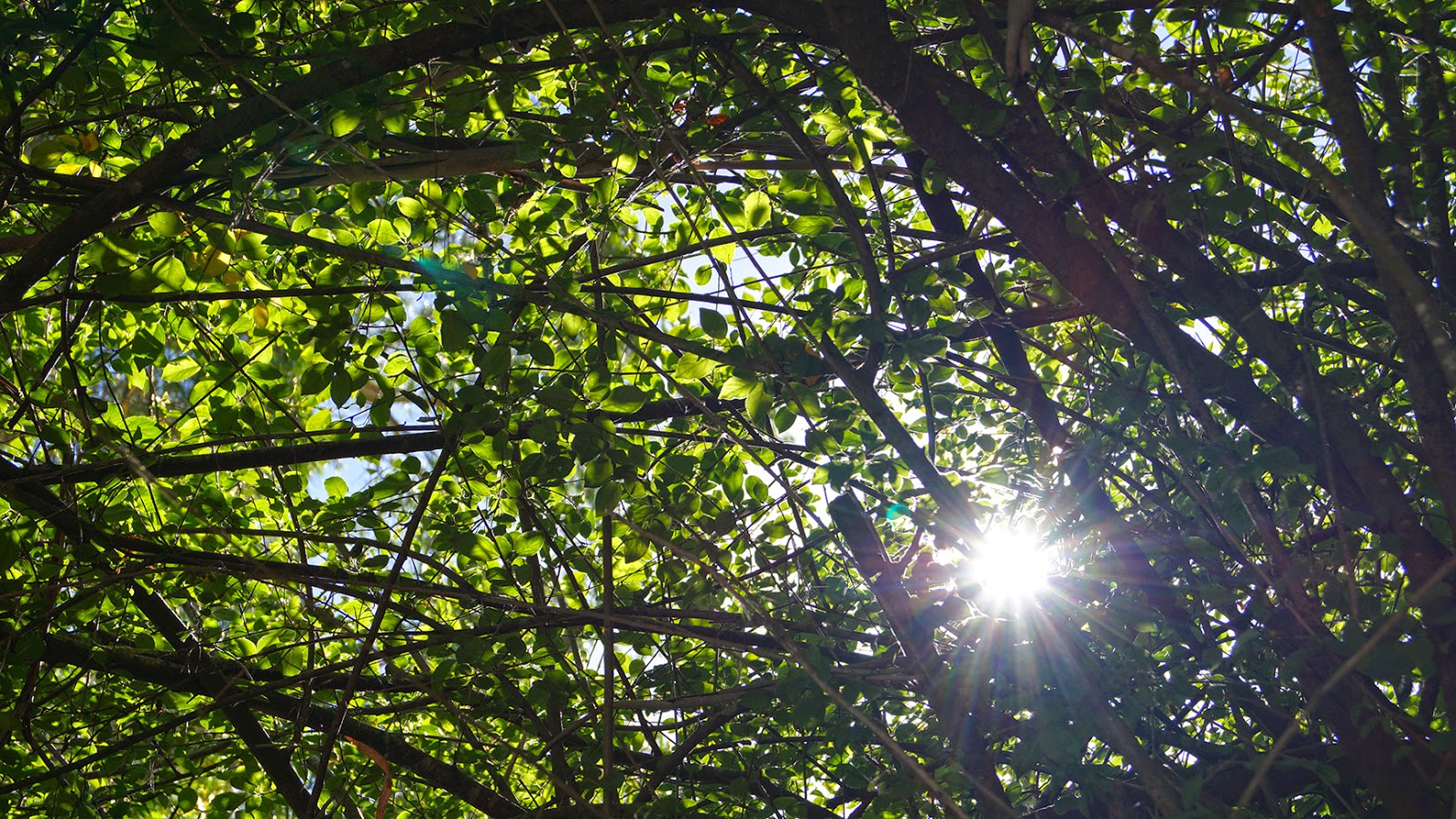 Our Summer sun peeking through a chink of the leaf canopy reminds us that our sun is just another star amongst billions upon billions!